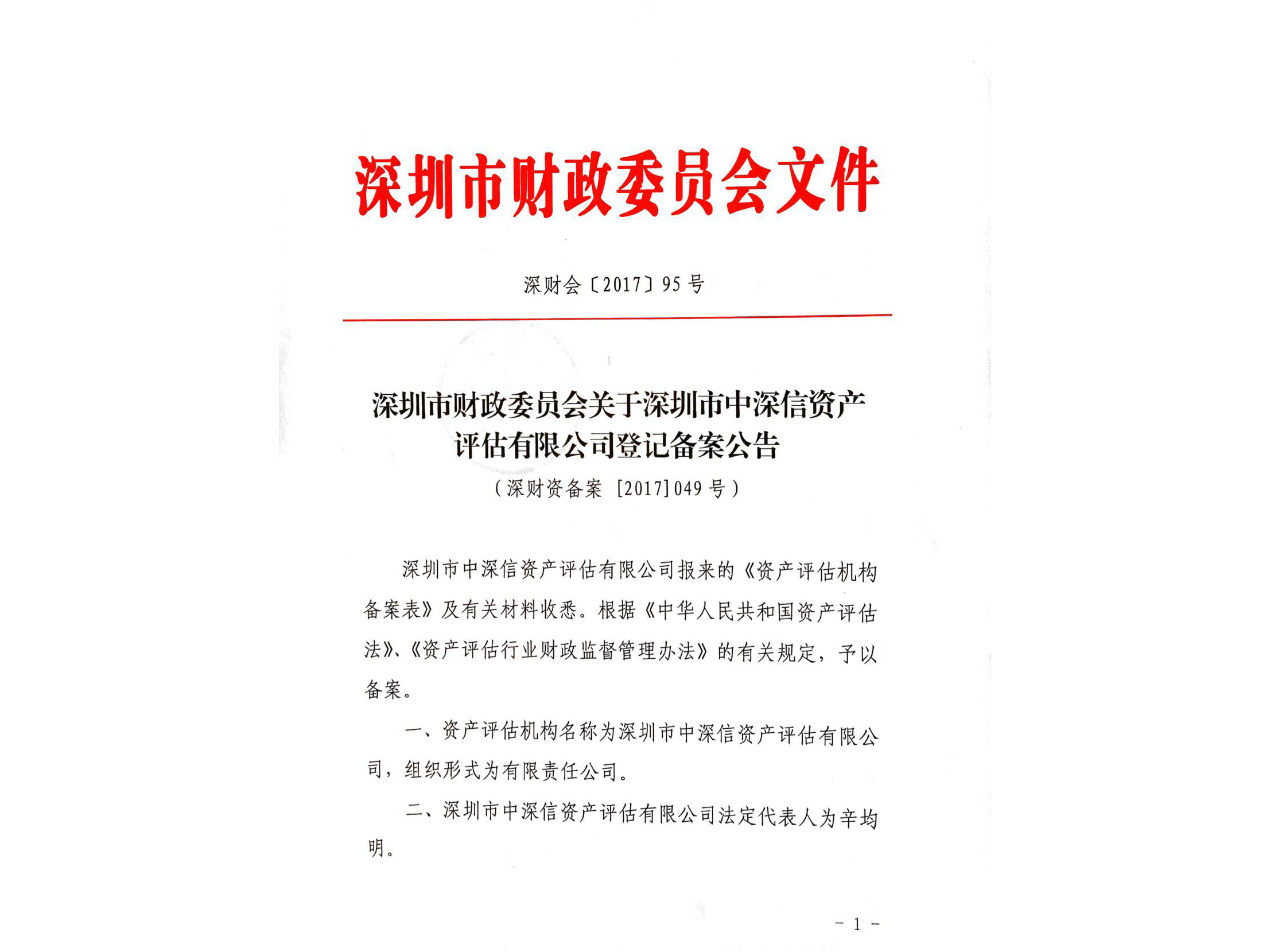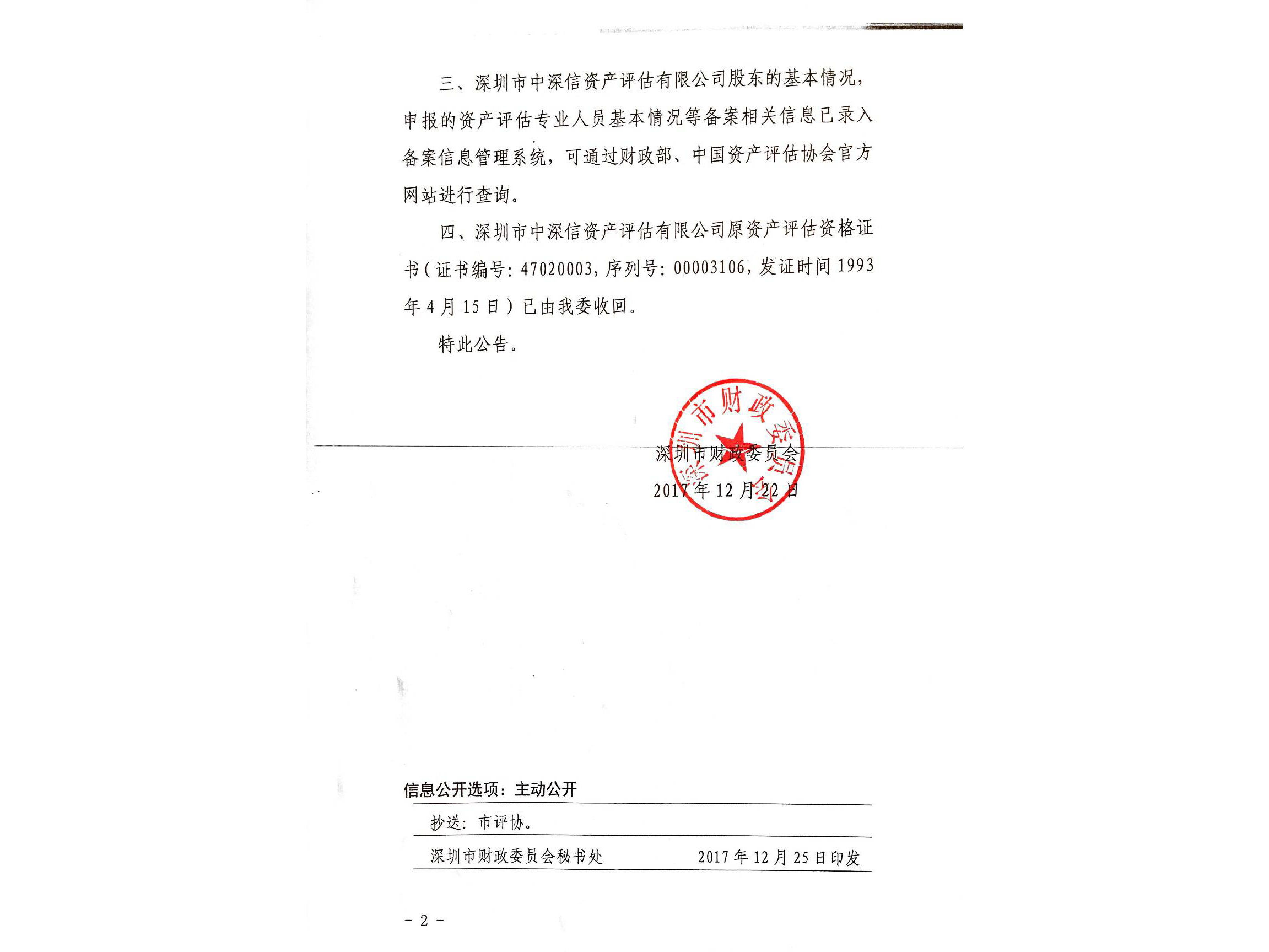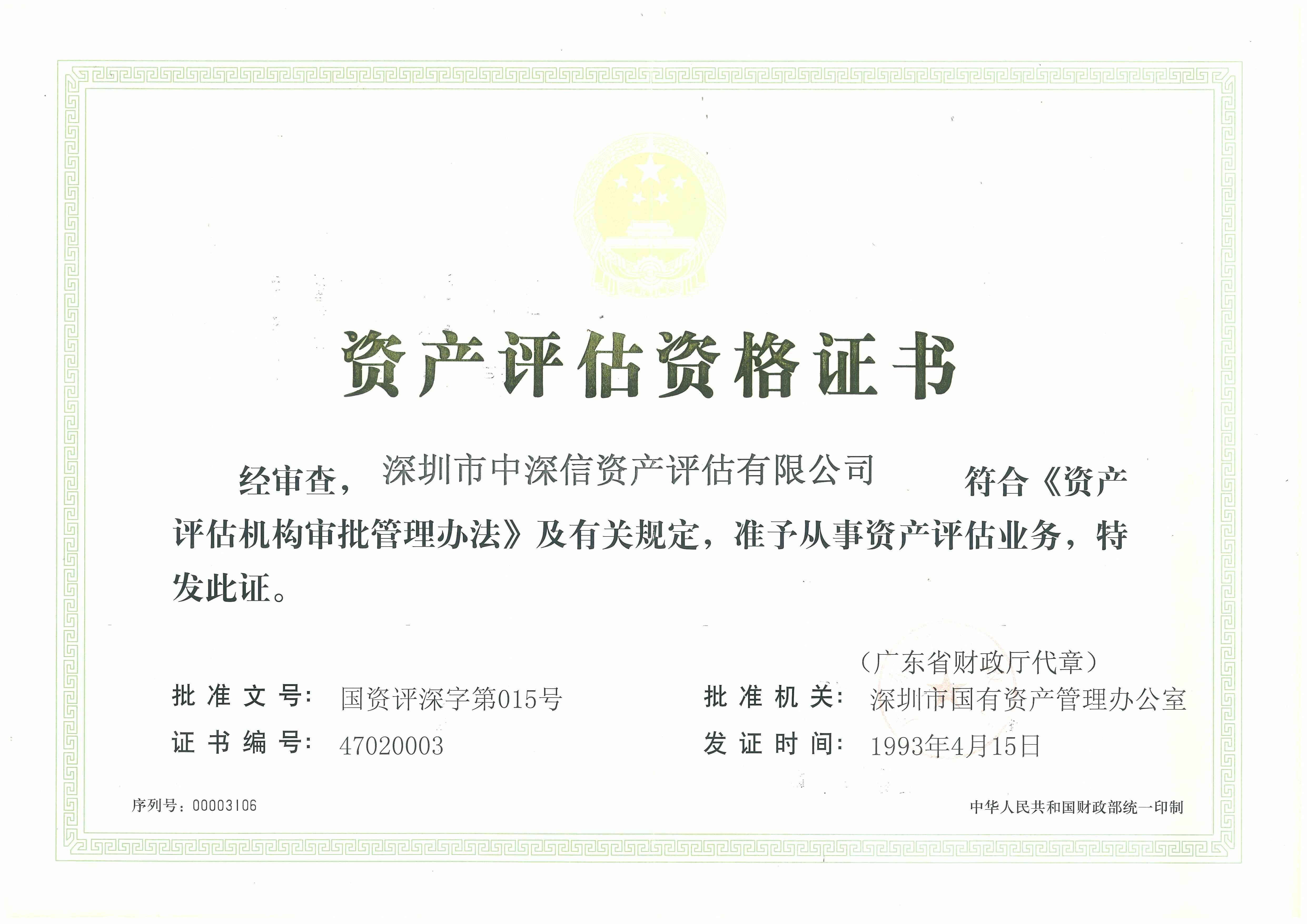 荣誉资质 - 深圳市中深信资产评估有限公司